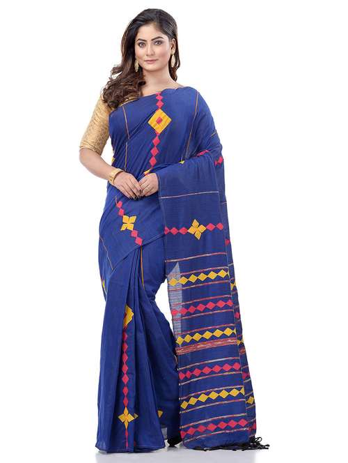 Add something extra to your grace and elegance with these saree collection from Desh Bidesh. Desh Bidesh specialises in handloom premium quality Bengali saree. Sure to add shine and lustre to your wardrobe, each piece is elegantly hand crafted to give you the look of fashion leader. Perfect for all occasions be it party, wedding, pooja or festivals this collection is going to be your companion for all your needs. You can pair these with heels or flats of your choice to complete the look.