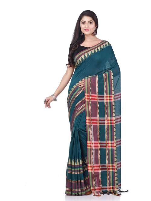 Explore the collection of beautifully Bengal Traditional Tant/Tangail Handloom Hand Made Soft Handloom Cotton Saree Mandir Designed Design of West Bengal designed sarees from Desh Bidesh. Every handloom cotton saree and Each piece is elegantly crafted and will surely add to your wardrobe. Pair this piece with heels or flats for a graceful look. You can wear this saree in all occasions specially Puja, Party and any occasion in your family or friends. The decorative material is Cotton Threads. Its unique color combination and Soft Bengal handloom Cotton tant saree The Elegant Class saree has comes from the Desh Bidesh. customer satisfaction is the utmost priority . The color may vary due to screen setting . Fabric: Cotton; Length: 6.3 meter Set Content: With Blouse Piece Care Instructions: Dry Clean Only Wash Care : Dry Wash Only, Don’t Bleach