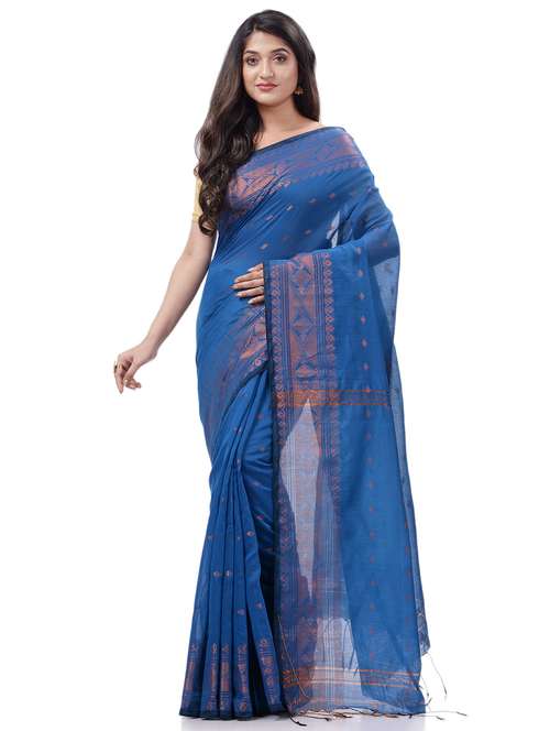 - » women's self design blue colored saree with blouse