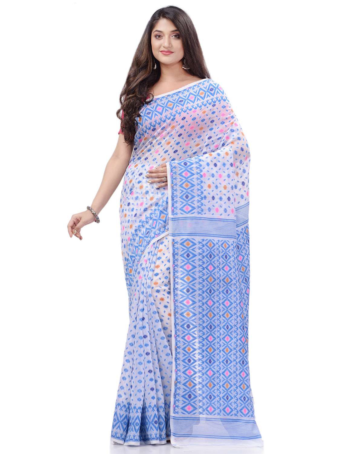Explore the collection of beautifully Bengal Traditional Tant/Tangail Handloom Hand Made Digital MinaKarat Resham Dhakai jamdani Bengal Pure Cotton Handloom Saree Whole Body Design from Desh Bidesh . Each piece is elegantly crafted and will surely add to your wardrobe. Pair this piece with heels or flats for a graceful look. You can wear this saree in all occasions specially Puja, Party and any occasion in your family or friends. The decorative material is Cotton Threads. Its Uniquie cotton thread design whole body. great looking color combination The Elegant Class saree has comes from the Desh Bidesh. customer satisfaction is the utmost priority . The color may vary due to screen setting . Fabric: Cotton; Length: 5.50 meter Set Content: Without Blouse Piece Care Instructions: Dry Clean Only Wash Care : Dry Wash Only, Don’t Bleach
