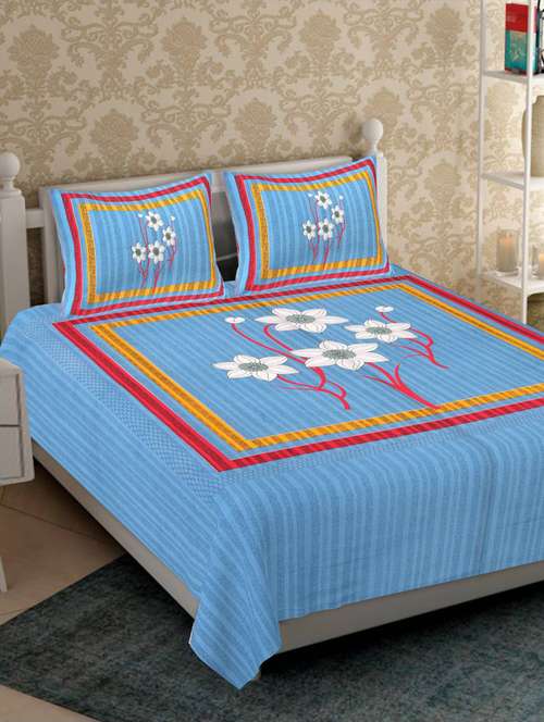 - » divamee jaipuri print cotton double bedsheet with 2 pillow covers -color resistance-size 85x90 inchs