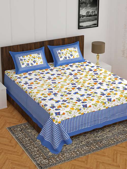 divamee bedsheets 100% pure cotton, vibrant colours jaipuri print double bedsheet with 2 pillow covers-color resistance - 18231190 - Very Small Image - 1