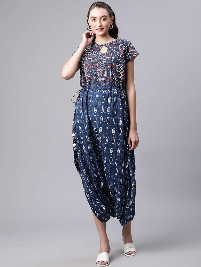 blue cotton full leg  jumpsuit - 18877435 - Very Small Image - 1