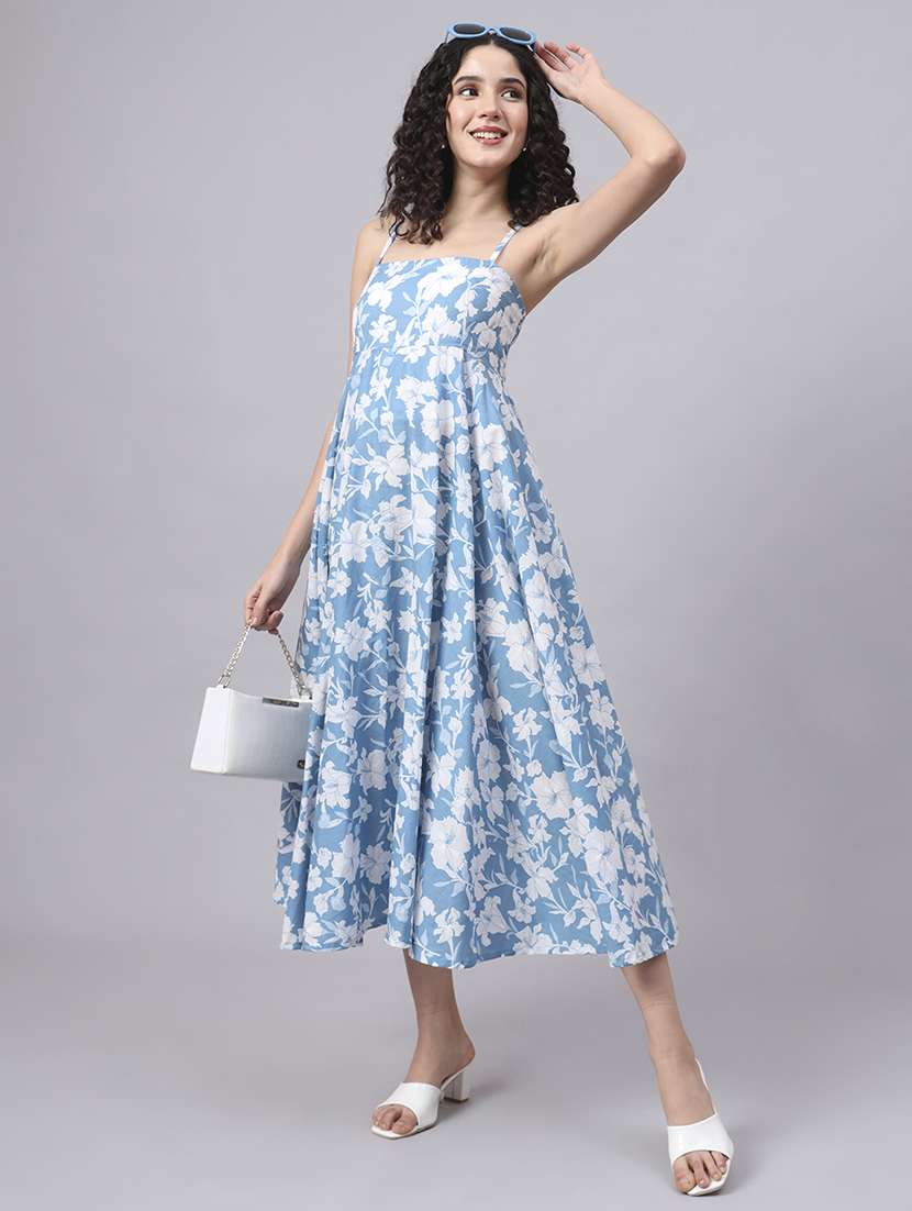 - » women printed shoulder strap fit & flare dress