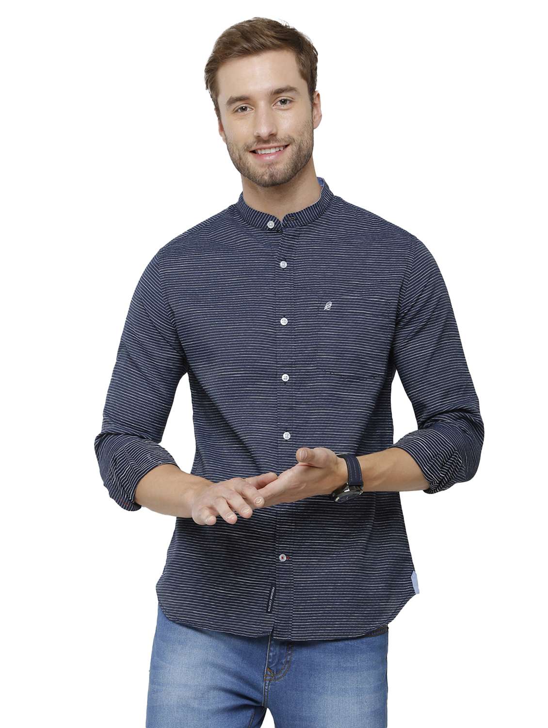 navy blue striped casual shirt