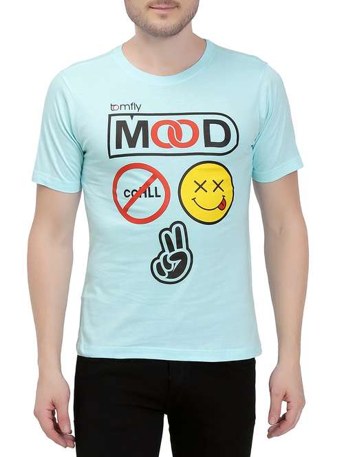 light blue cotton front print tshirt