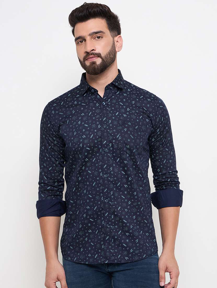 - » men slim fit printed long sleeve casual shirt