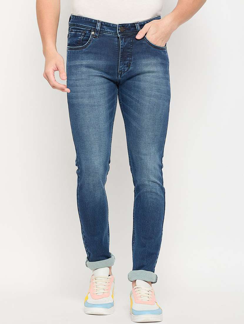 men washed mid rise slim fit jeans
