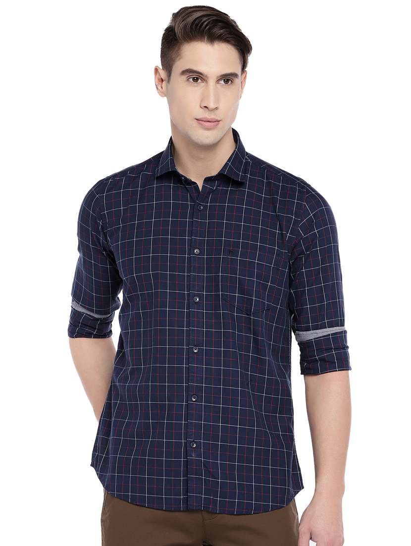 navy blue checkered casual shirt