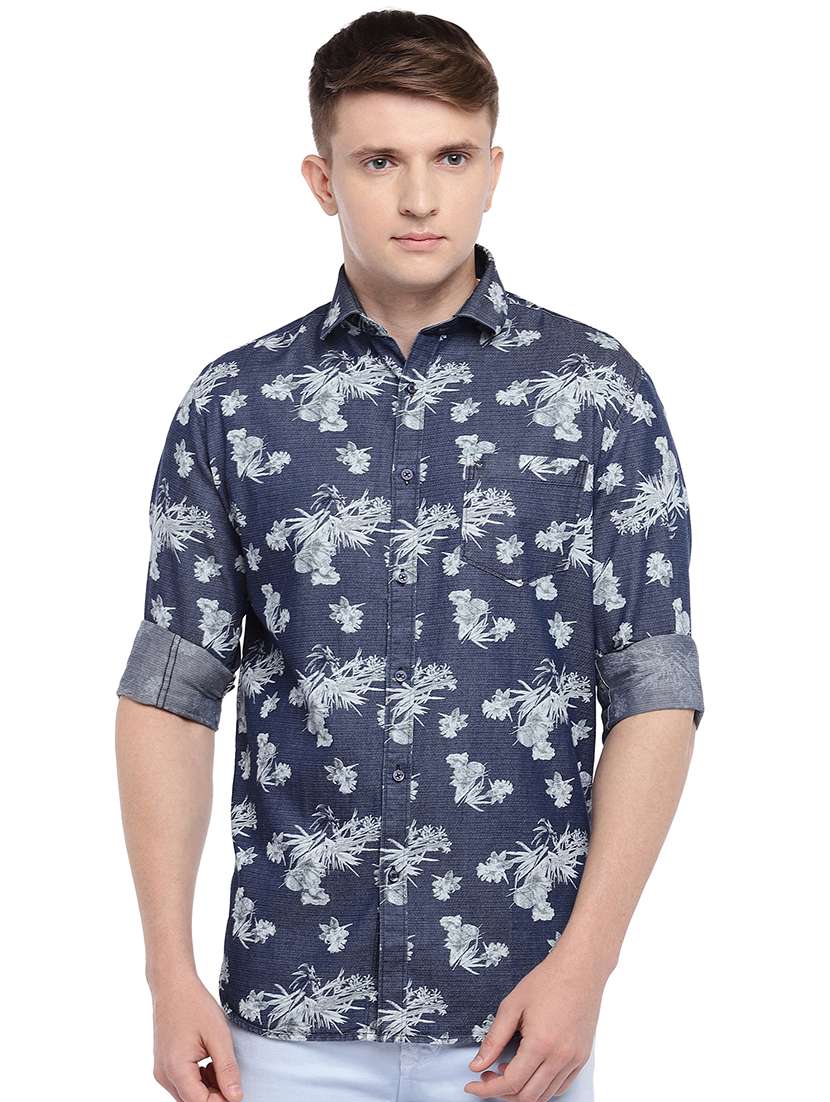 - » navy blue floral print casual shirt