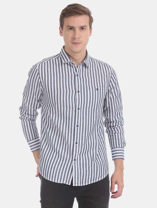 blue striped casual shirt