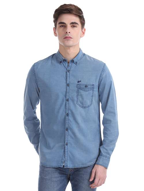 blue solid casual shirt