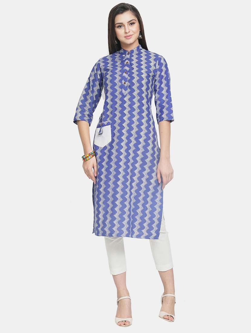 - Grab this beautiful kurta made up of cotton fabric featuring mandarin collar neck designs.