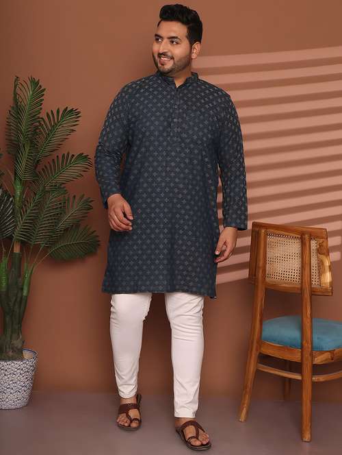 ED Plus Blue Plus Design Printed Men's Long Kurta