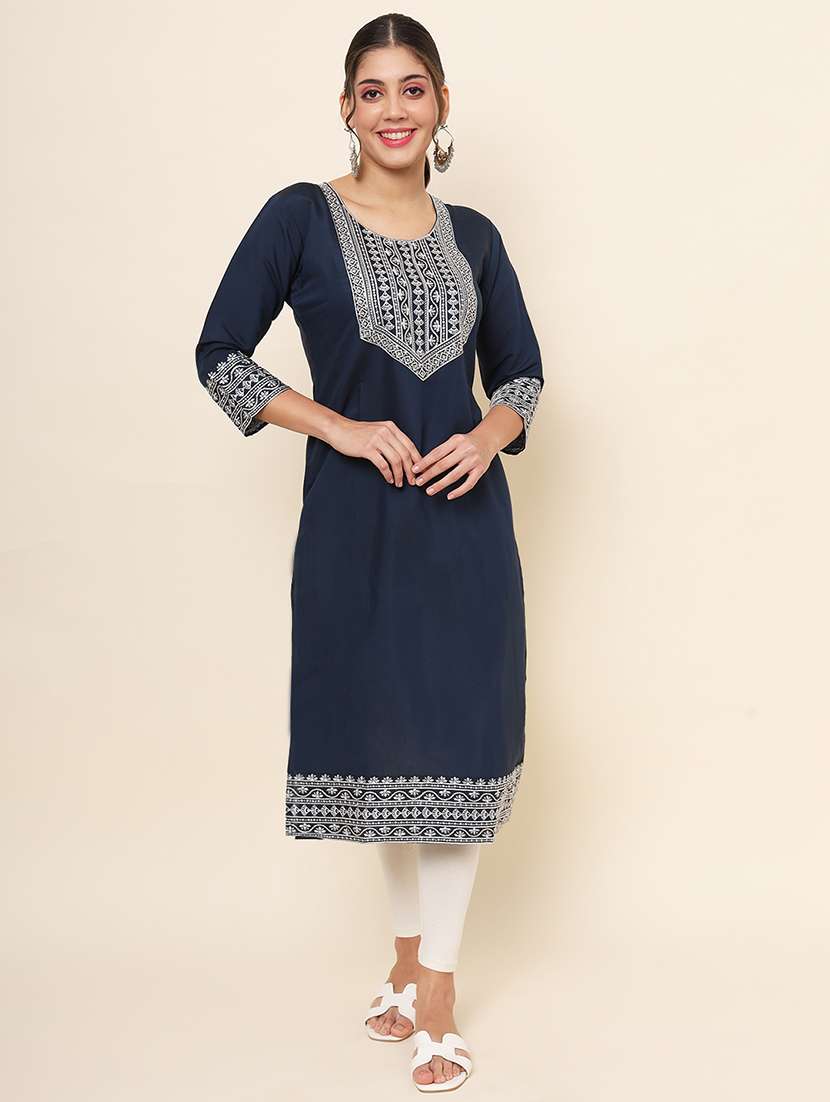 - Grab this beautiful kurta made up of cotton fabric featuring round neck designs.