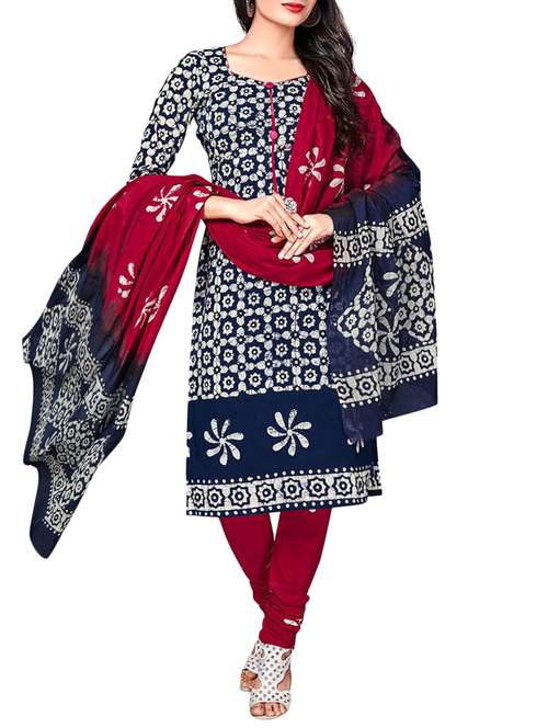 - » blue cotton printed unstitched churidaar suit