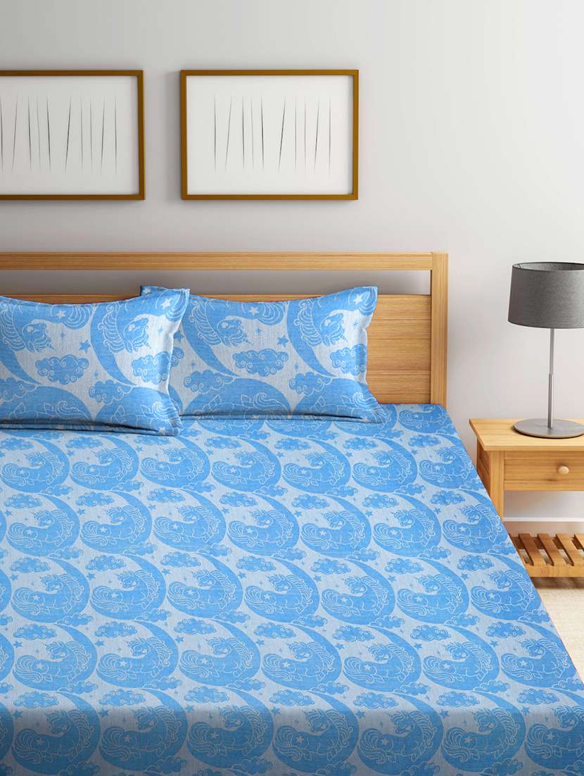 fabinaliv blue cartoon design 100% cotton handwoven king size double bedcover with 2 pillow covers - 19926963 - Very Small Image - 1