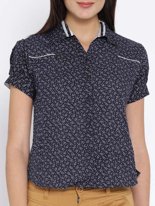 - » navy blue cotton printed shirt