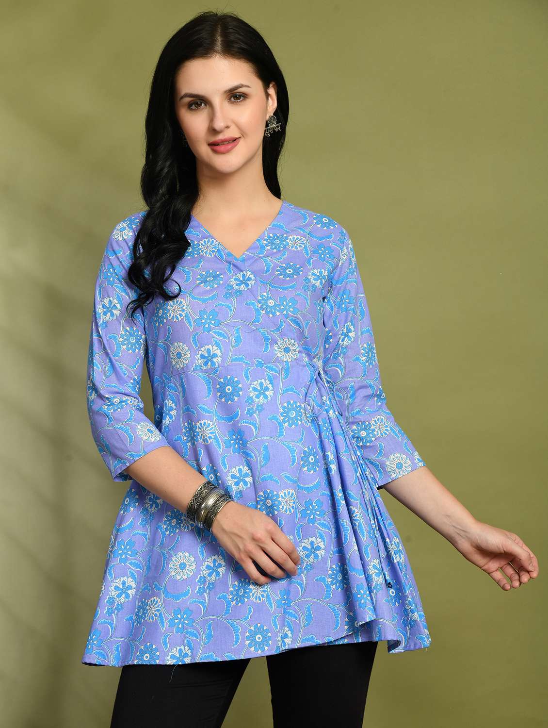 - » women printed three quarter sleeve angrakha kurti