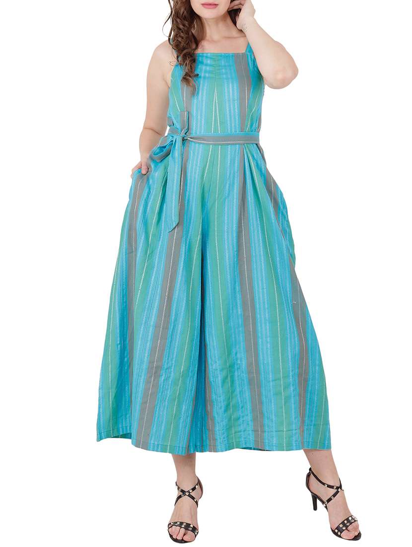 tie up waist striped jumpsuit