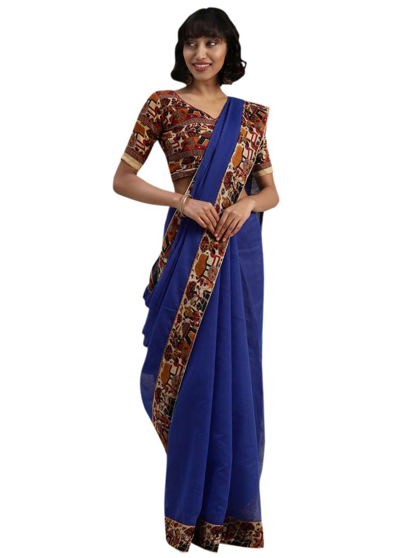 - » solid bordered plain saree with blouse