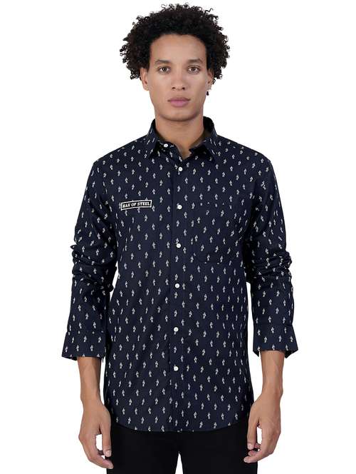 blue printed cotton casual shirt
