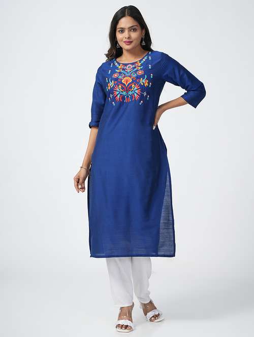 - Grab this beautiful kurta made up of cotton fabric featuring round neck designs.