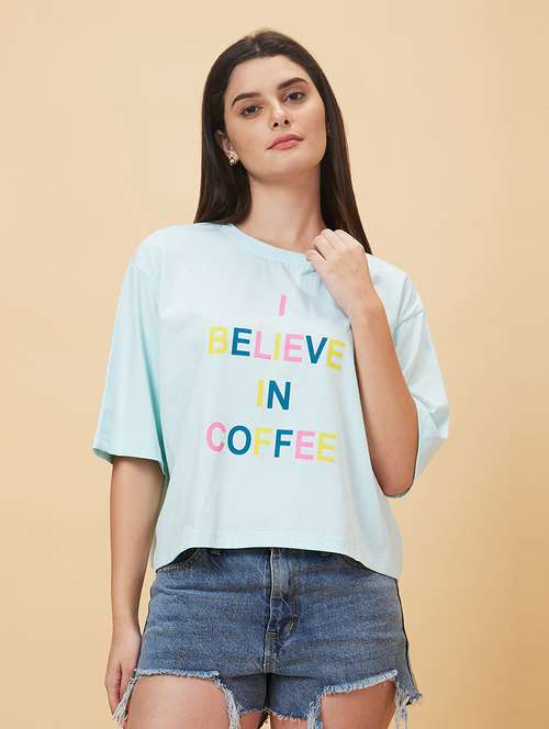 - Get ready to adorn some funky tees! LimeRoad brings to you the finest collection of tees from Globus and that too in light blue colours.