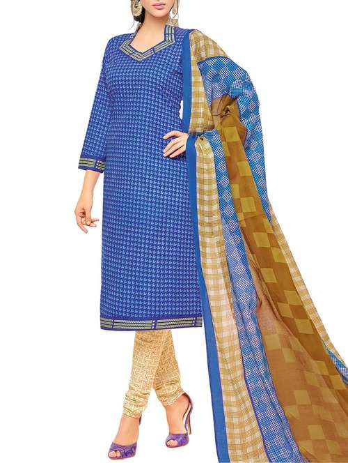 blue cotton unstitched suit