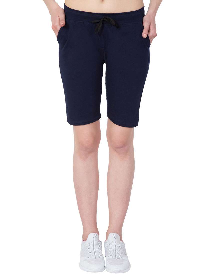 - » blue mid rise solid shorts