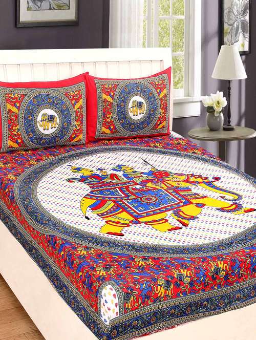 - » 140 tc cotton jaipuri printed double bed sheet with 2 pillow cover