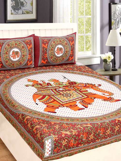140 tc cotton jaipuri printed double bed sheet with 2 pillow cover
