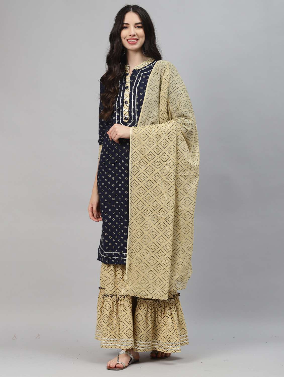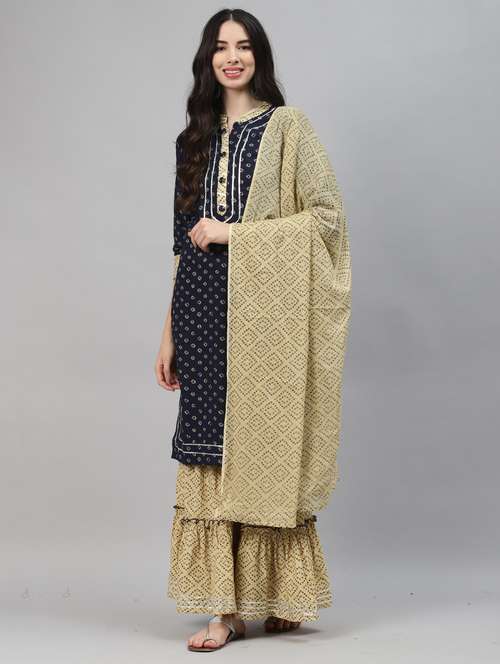 blue cotton kurta sharara set