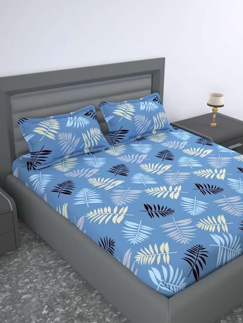 - » 120 tc rich cotton flat bedsheet for king size bed with 2 pillow covers|108x108 inch|design allover|color - blue|