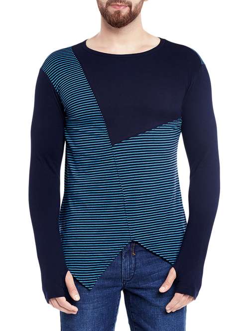 blue cotton blend asymmetric t-shirt