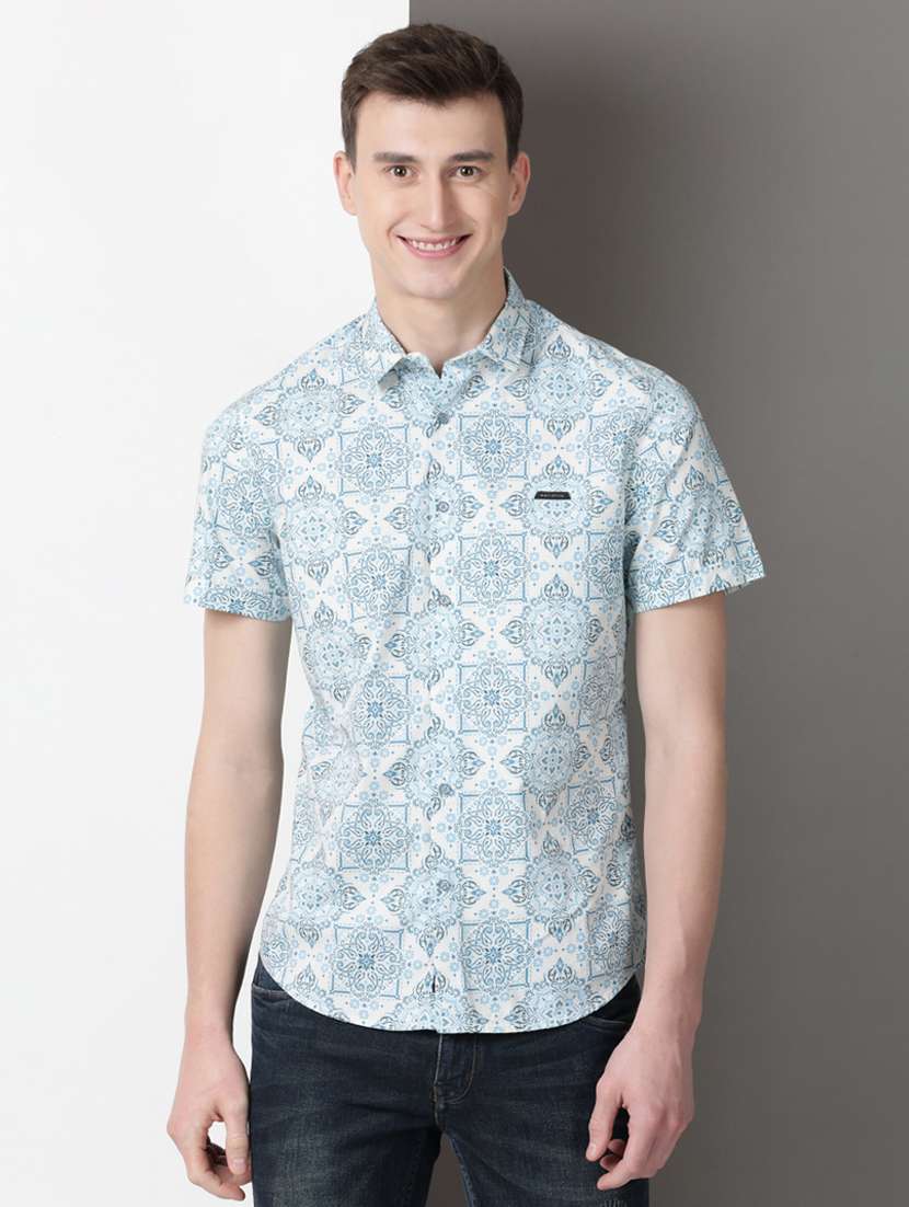 men printed short sleeve regular fit casual shirt
