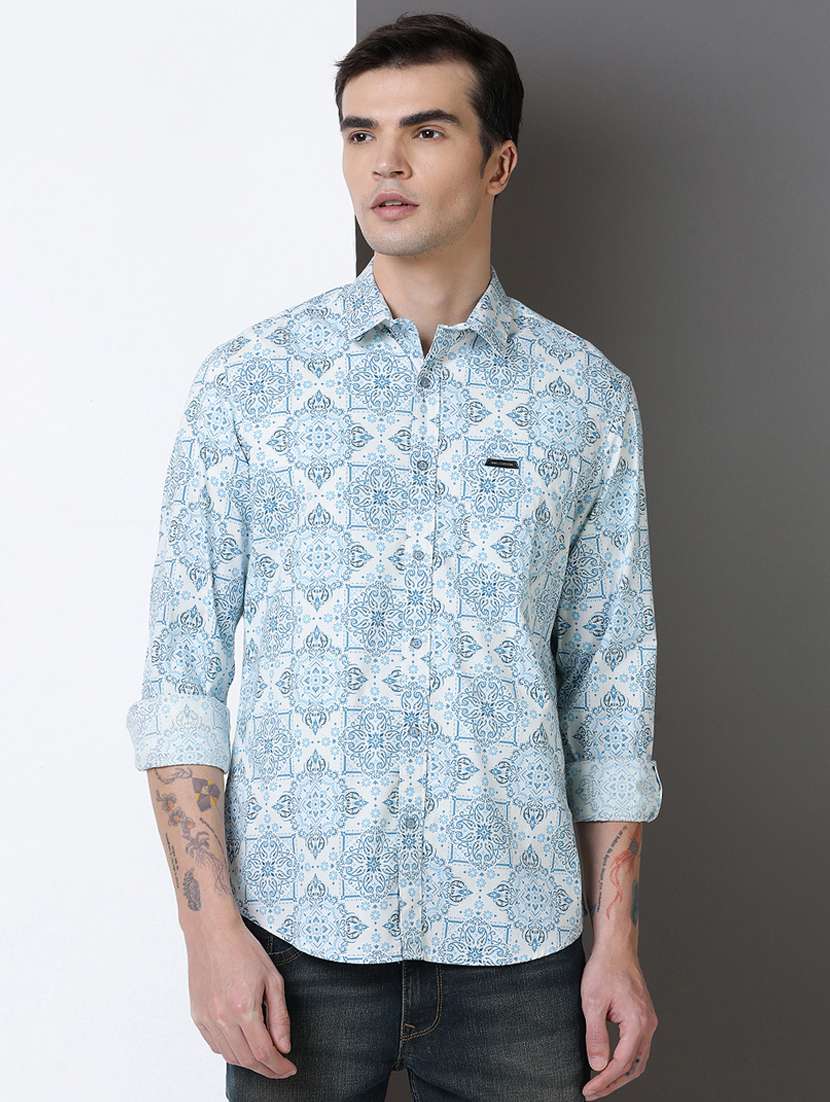men printed long sleeve regular fit casual shirt