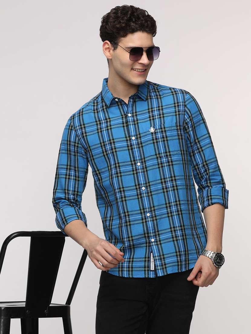 men checkered long sleeve regular fit casual shirt