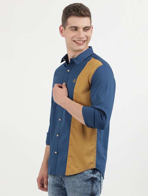 men color block long sleeve regular fit casual shirt