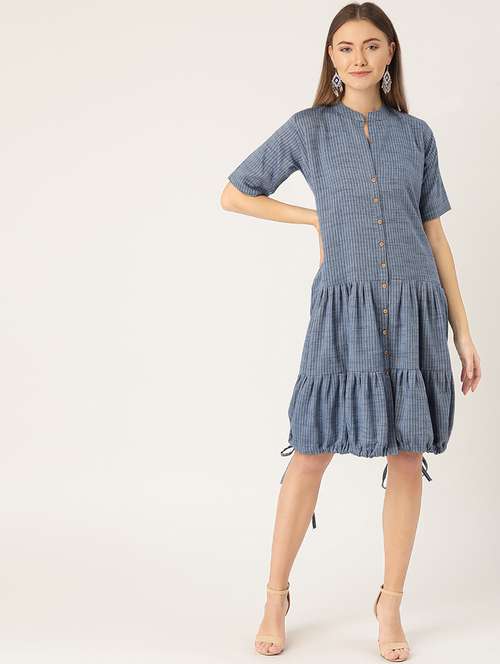 mandarin neck striped dress  - 16959074 - Very Small Image - 1