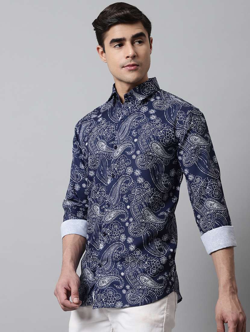 men navy blue regular fit paisley print casual shirt - 19143704 - Very Small Image - 1
