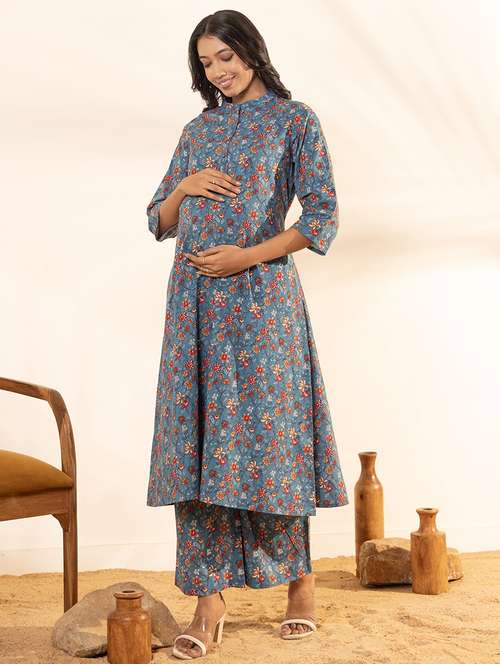 women blue kurta pant set