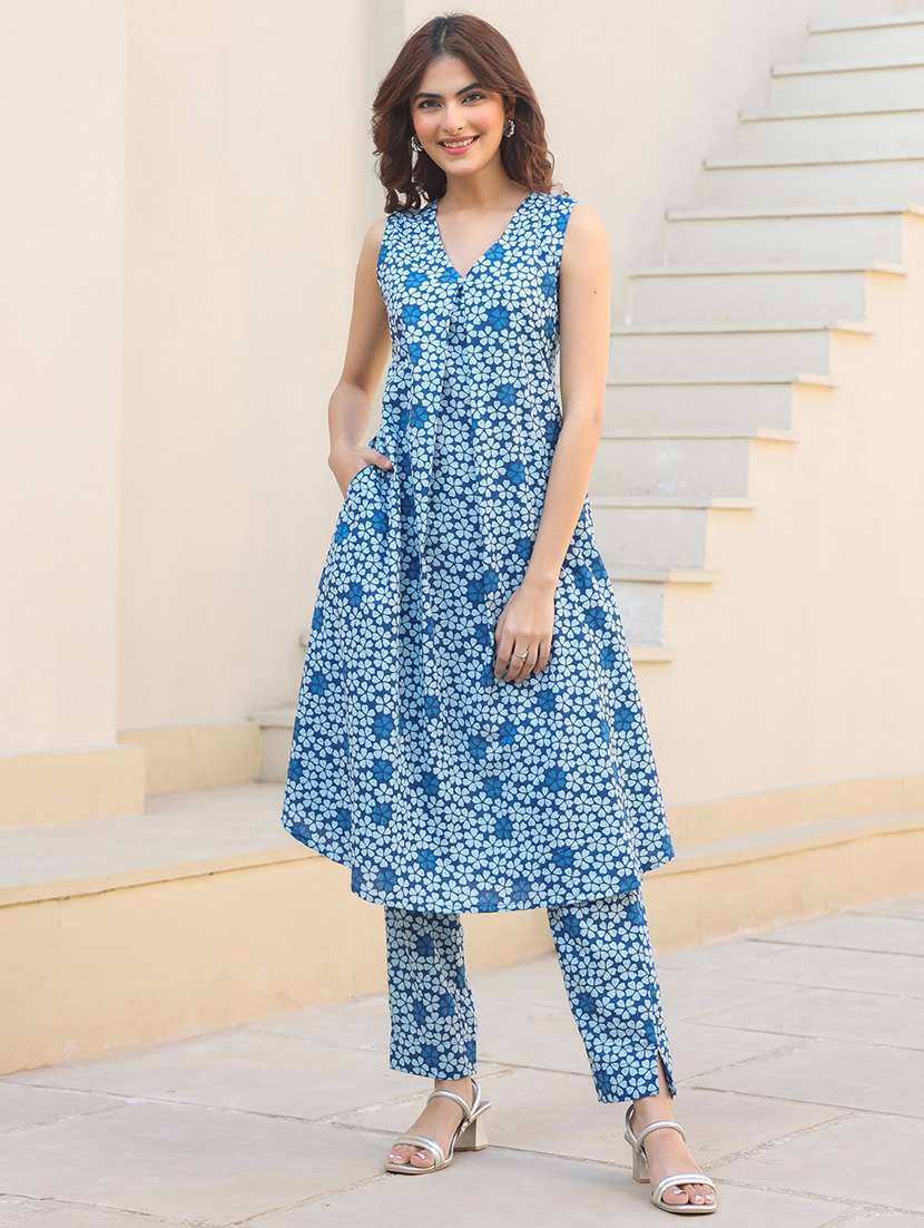 - » women blue floral printed kurta pant set