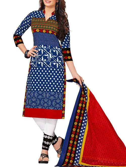 blue cotton printed dress material - 11261268 - Very Small Image - 1