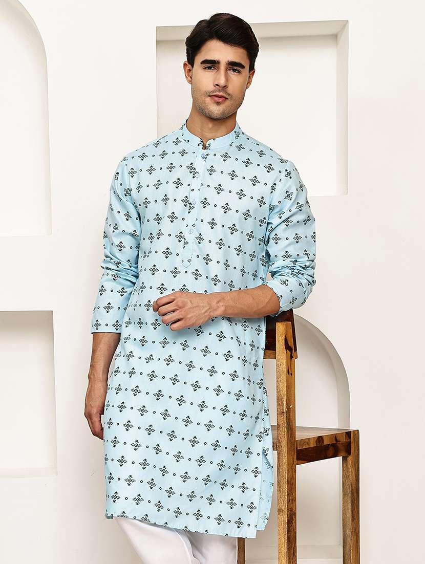 This cotton blend kurta offers a perfect blend of comfort and tradition. Featuring intricate ethnic prints, a mandarin collar, and relaxed tailoring, it's ideal for festive occasions, cultural events, or casual gatherings. Soft, breathable fabric ensures all-day comfort with effortless ethnic charm and timeless appeal.