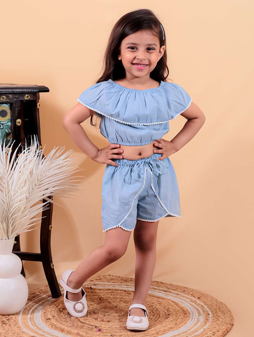 - Dress up your little princess in twin sets and jump suits in shorts sets with magnificent embellished designs to make her childhood more fun and fashionable.