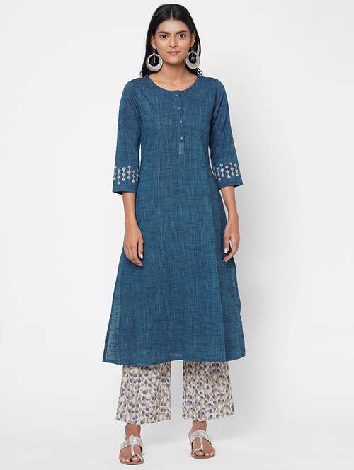 blue cotton kurta palazzo set