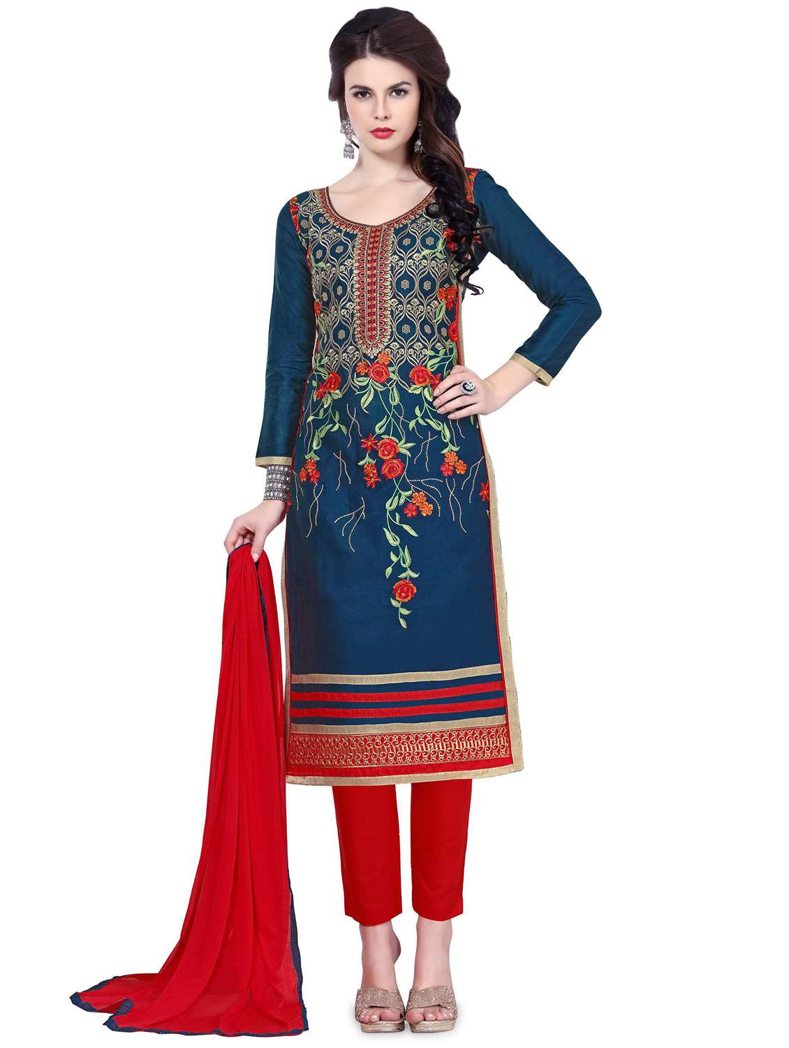 - Look ultra gorgeous in unstitched suits from Kavya and grab these beautiful suits in blue colour.