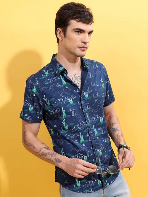 - Be a head turner by wearing this casual shirt from Ketch and grab it in blue colour.