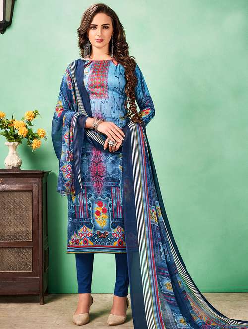 printed unstitched churidaar suit